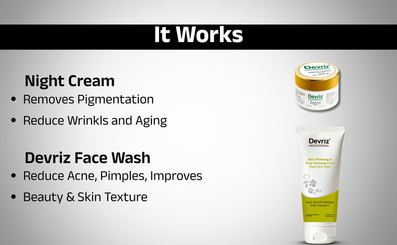 Achieving a clear and blemish-free skin complexion is a dream for many. To help make this dream a reality, Devriz Healthcare has introduced the Acne and Pimple Kit. This kit is designed to eliminate acne marks and pimples and includes a powerful combination of Devriz skin whitening deep cleansing face wash and Devriz skin brightening and whitening night cream.