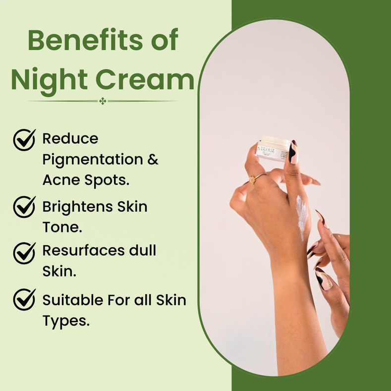 Say Goodbye to acne marks ,ageing and pigmentation with mulberry extract + lactic acid +grapes combination. Introducing the all-powerful whitening night cream.