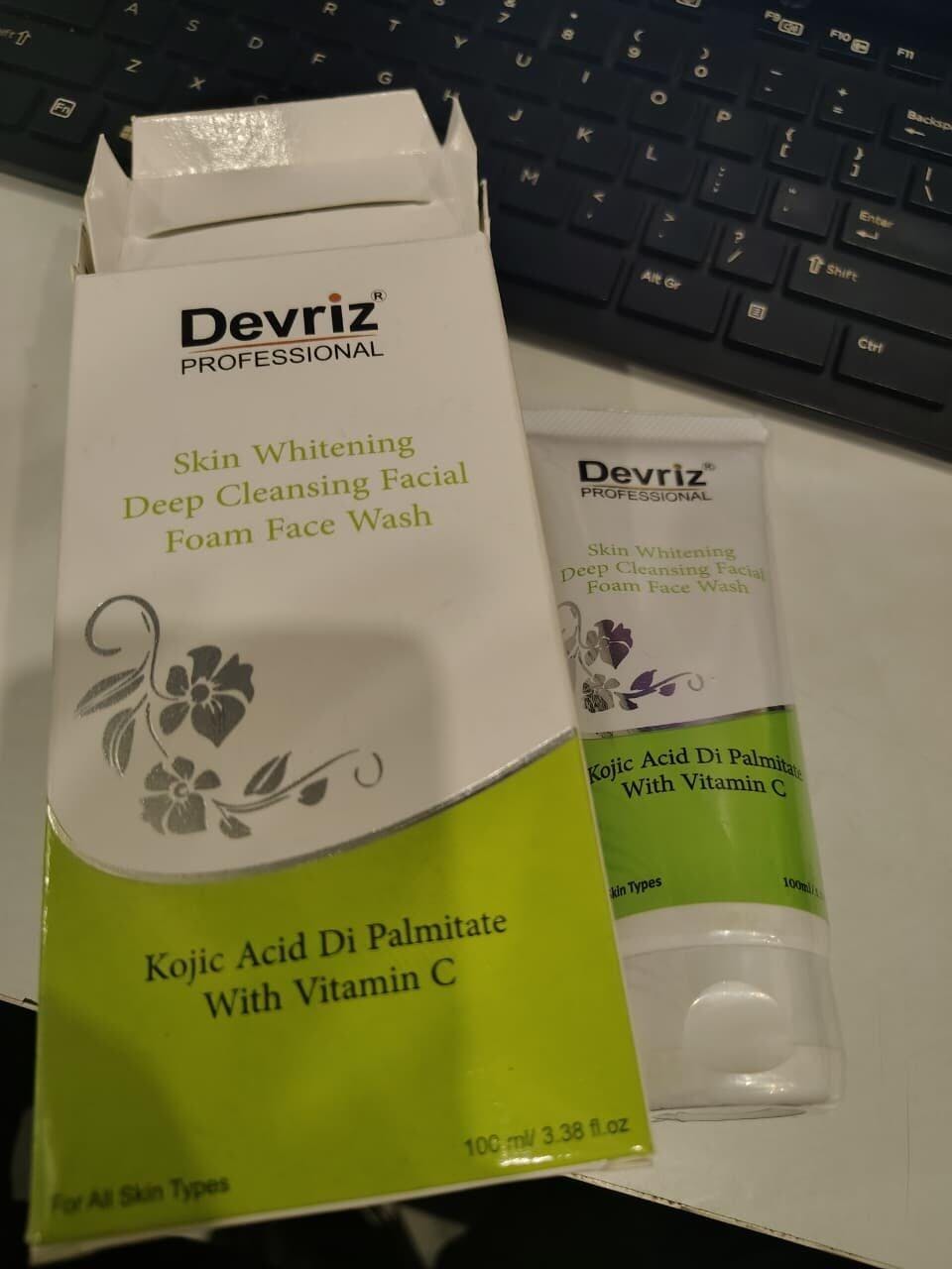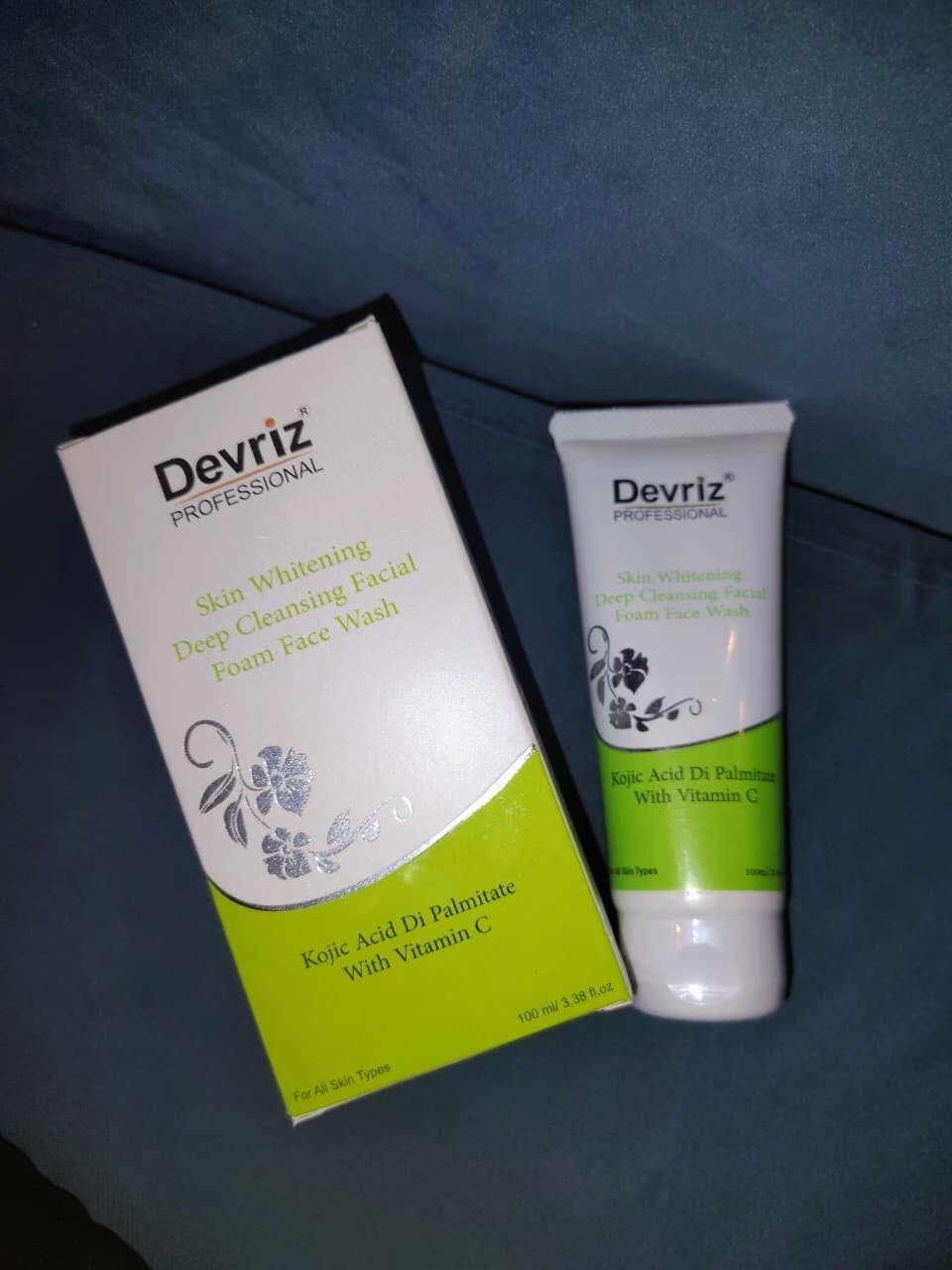 Devriz Skin Whitening foam face wash is a skin-foaming face wash to reduce visible sun damage, age spots, or scars. It is also infused with Vitamin C, jojoba esters, kojic acid and palmitic acid to lighten or brighten complexion and offer enough hydration to the skin.